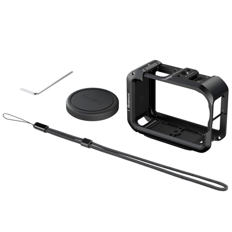 La cage SmallRig pour DJI Osmo Action 6 (Advanced Edition) 5887 est spécialement conçue pour la DJI Osmo Action 6. Cette cage métallique intégrale offre une protection robuste contre les chocs tout en garantissant un accès facile à tous les boutons et ports. Ses multiples interfaces d'extension permettent une fixation aisée des accessoires, optimisant ainsi l'efficacité de la prise de vue. Le kit comprend la cage, une dragonne, un cache-objectif en silicone et une clé Allen.