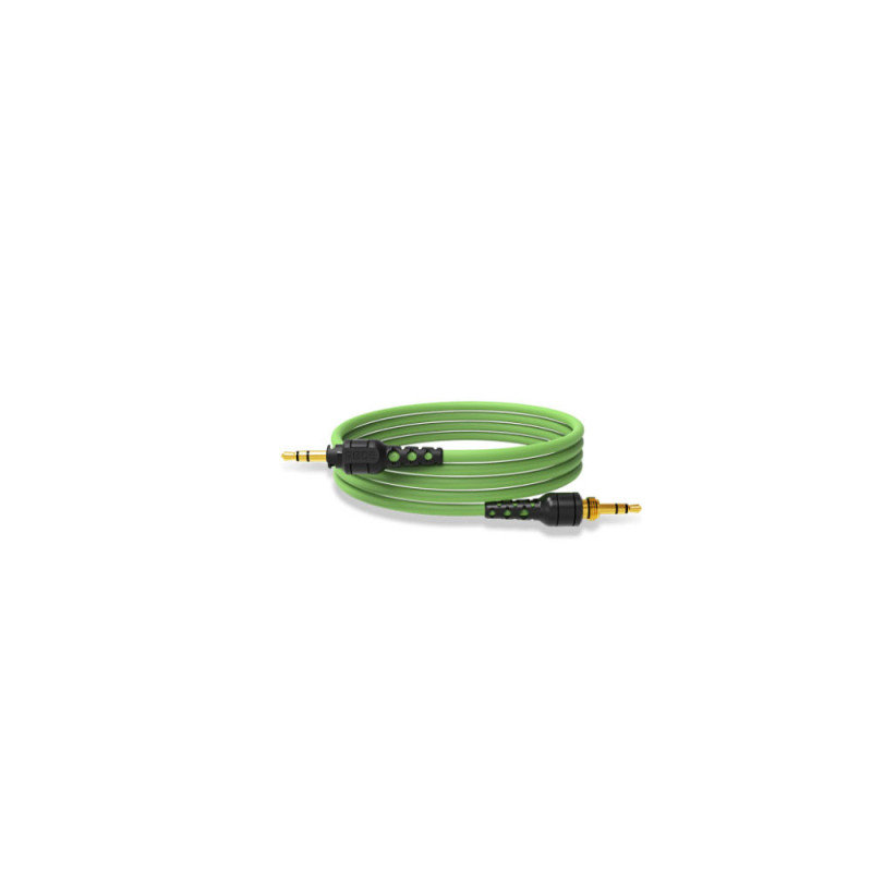 Le NTH-Cable est un câble flexible vert de 1,2 m à utiliser avec le casque RØDE NTH-100. Il est doté d'un connecteur de verrouillage pour éviter qu'il ne se détache de la fixation de l'écouteur et le câble se termine par une paire de fiches jack TRS 3,5 mm. Un jeu d'anneaux colorés vous permet d'identifier à qui est le câble. Un adaptateur de 3,5 mm à ¼ de pouce est également inclus pour une utilisation avec des équipements audio professionnels. Un bouchon en caoutchouc est également fourni pour la prise du casque de l'écouteur qui n'est pas utilisée.