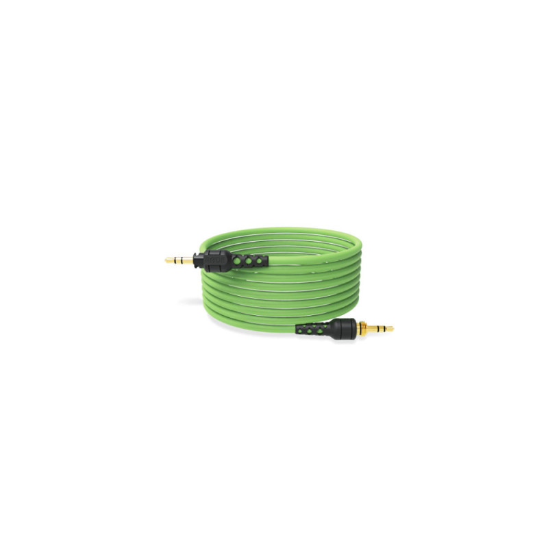 Le NTH-Cable est un câble flexible vert de 2,4 m à utiliser avec le casque RØDE NTH-100. Il est doté d'un connecteur de verrouillage pour éviter qu'il ne se détache de la fixation de l'écouteur et le câble se termine par une paire de fiches jack TRS 3,5 mm. Un jeu d'anneaux colorés vous permet d'identifier à qui est le câble. Un adaptateur de 3,5 mm à ¼ de pouce est également inclus pour une utilisation avec des équipements audio professionnels. Un bouchon en caoutchouc est également fourni pour la prise du casque de l'écouteur qui n'est pas utilisée.