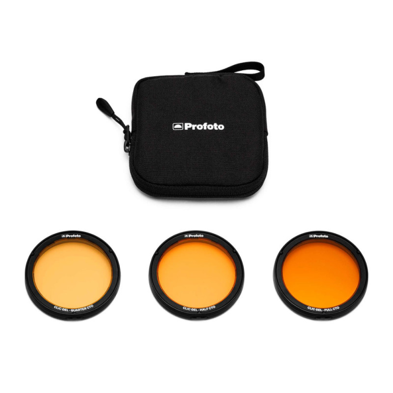 Quand vous vous retrouvez dans des conditions d'éclairages complexes, le kit Clic CTO de Profoto est idéal pour vous. Vous trouverez dans un étui de protection différentes températures de couleurs proposées par Profoto comme le Full CTO, Half CTO et Quarter CTO. Le montage est très facile et simple, il se fait via une monture magnétique. Ce kit Clic CTO est donc compatible avec toute la gamme de flashs série A.